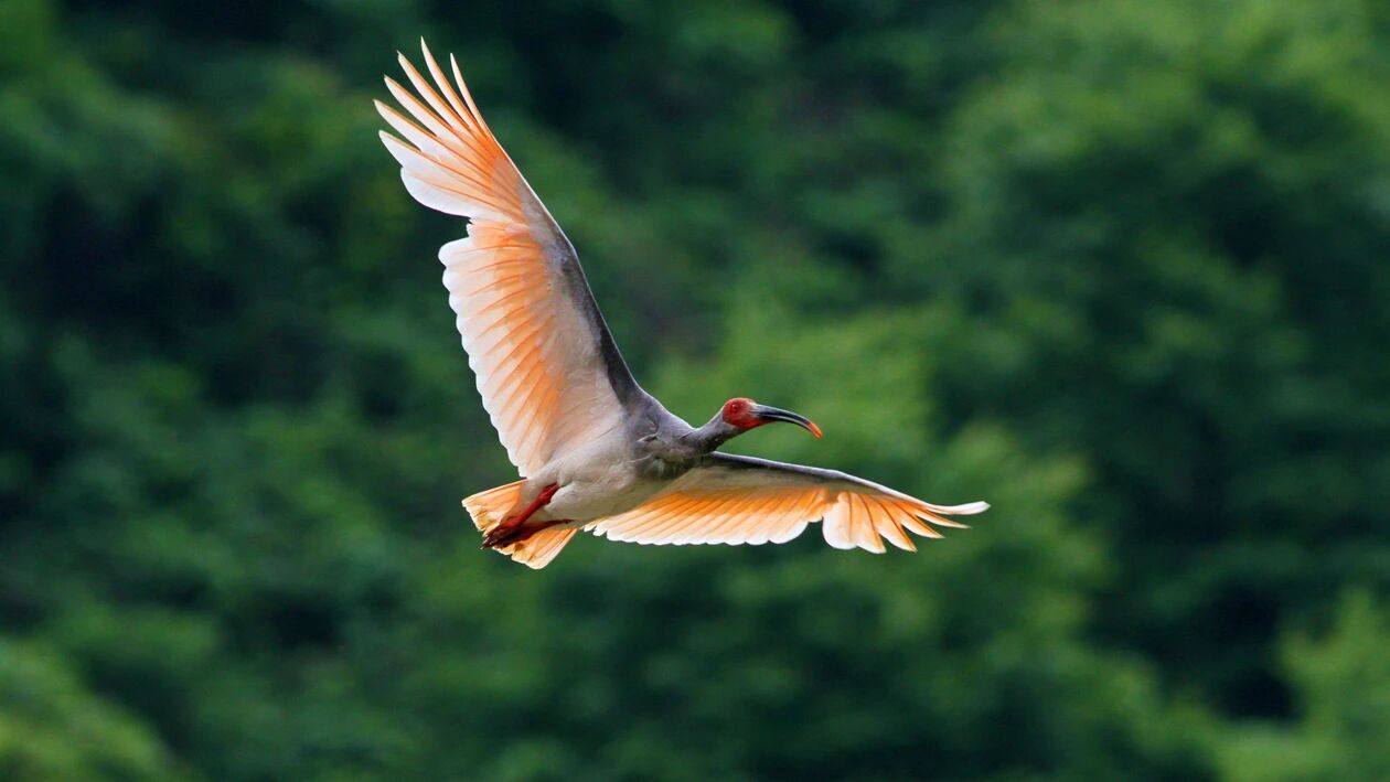 朱鹮,《世界自然保护联盟濒危物种红色名录》濒危物种,中国《国家重点保护野生动物名录》一级保护动物。