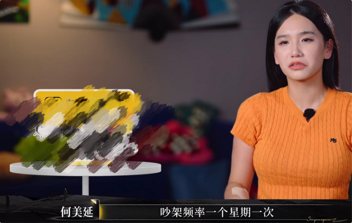 何美延在采访中控诉,梁老师过去曾有“大拍桌子”“情绪失控”的行为。